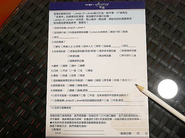 我們用餐後,店員送上意見調查表