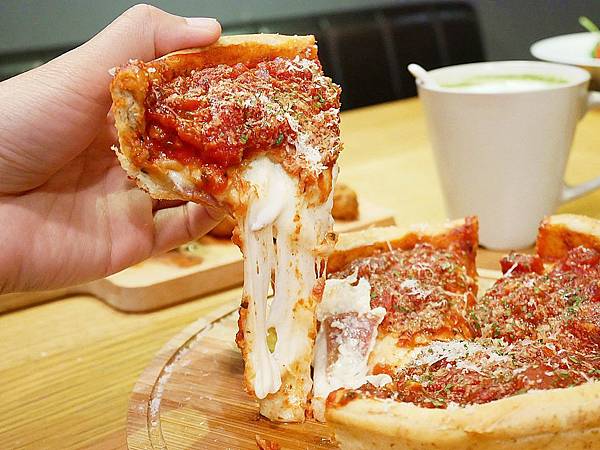 但店家的深盤披薩大大顛覆我們對披薩的謬誤,因為不僅夠濕潤,而且完全不乾口
