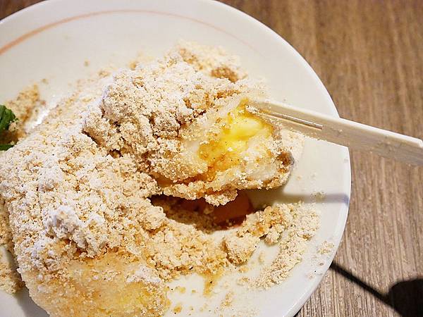 這款甜點超特別,將麻糬內部包入起司再炸過,外層裹上糖粉和花生粉,鹹甜組合超奇妙