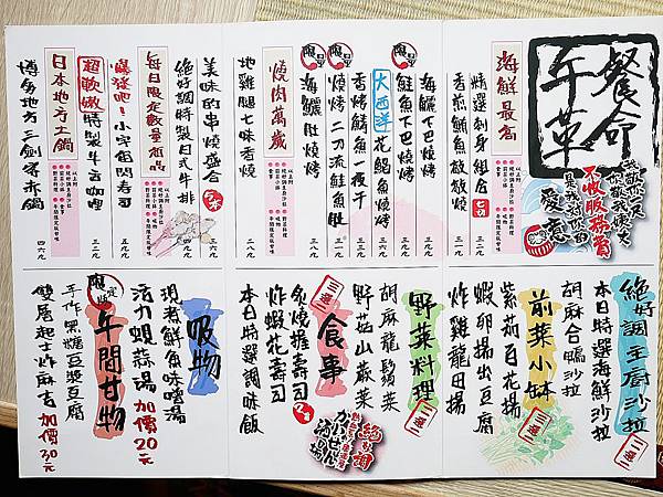 先附上菜單