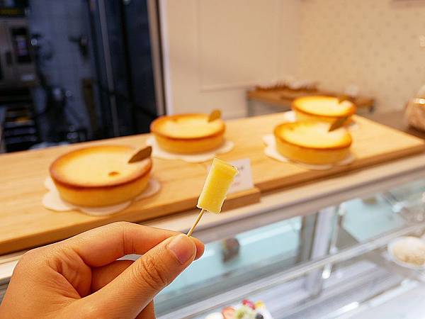 櫃台有放一個試吃區,店家會準備起司蛋糕讓消費者嚐鮮,喜歡再購入