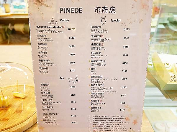 單人的飲品有限制在$120之類,如果是雙人套餐則是飲品任選,還多兩個mini起司蛋糕