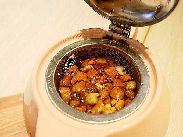茶壺的蓋子一掀開,裡面是滿滿果乾而非茶包