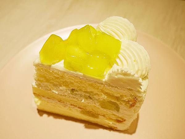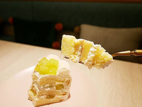 除了最上面鋪滿滿之外,蛋糕中間也有填入哈密瓜庫利,幾乎每一口都吃的到哈密瓜香氣