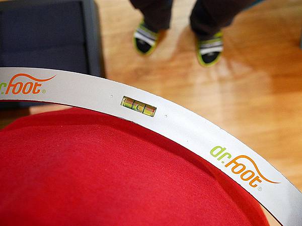 套上新鞋墊後,評估師會用骨盆測量儀幫我測量穿上鞋墊後是否讓我達到水平狀態