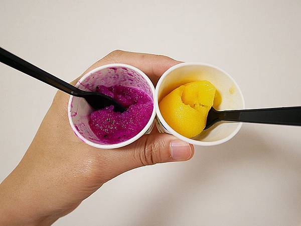 那天我們拿到芒果和紅龍果的雪沙,保留水果的香氣但又不會太甜,味道相當清爽