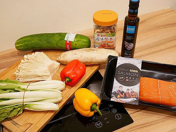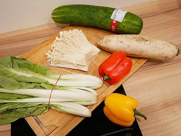 除了鮭魚之外,還買了白蘿蔔、小白菜、甜椒等等,要來做溫沙拉