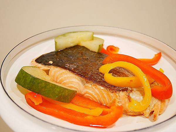 魚肉大約兩面煎到上色,中間稍稍轉白就可以,網路上說鮭魚7分熟就可以享用