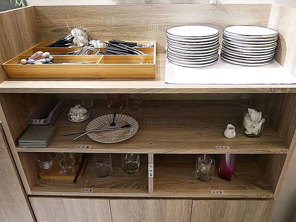店內採自助式,餐具、分享盤都放置在櫃台旁的架子上