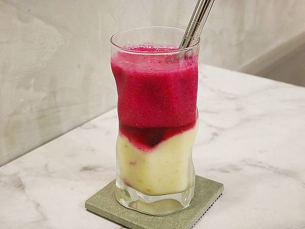 這款是季節限定的飲品,用紅火龍果搭配芭樂,很有美感的漸層