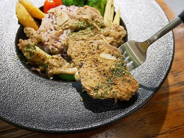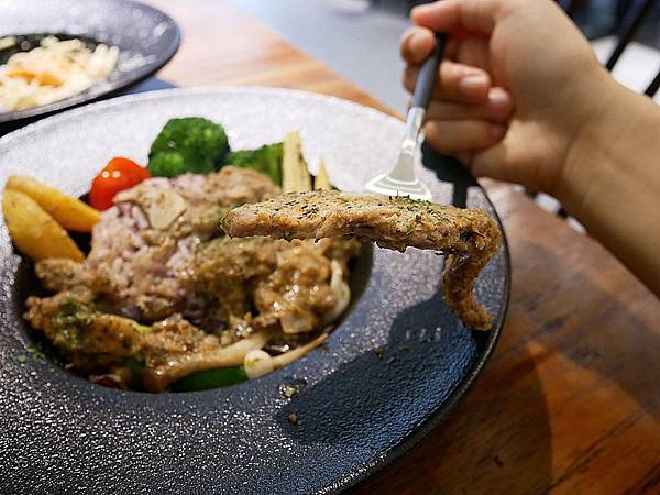 豬肉挺大塊又厚實,吃起來微酸還帶點淡淡的柳橙風味,還滿清爽