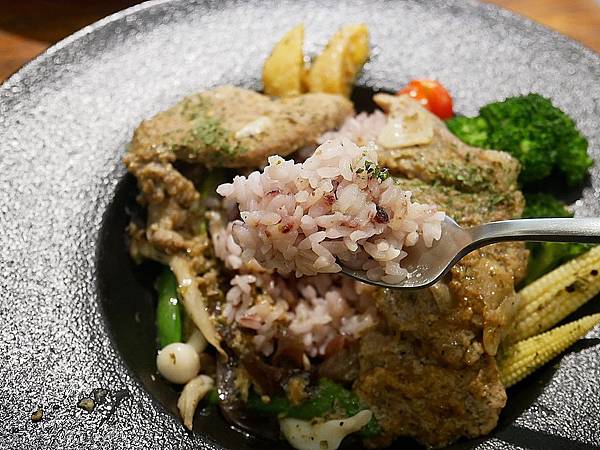 米飯是使用紫米飯,所以吃起來口感更好,而且也比較香