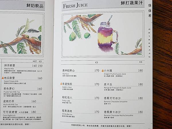 附上菜單
