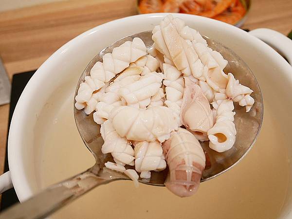 切好之後稍微燙一下就可以起鍋,美美的魷魚捲就大功告成了