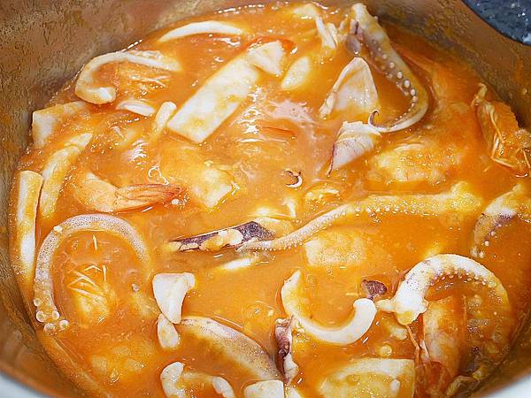 然後放入海鮮煮熟之後就可以起鍋囉!!