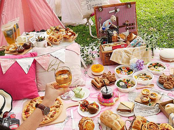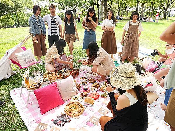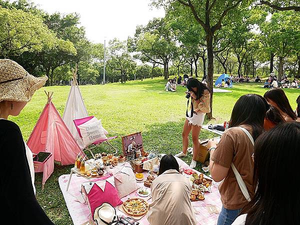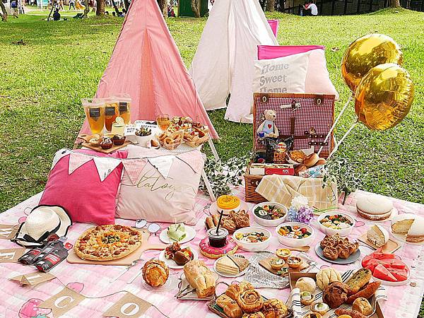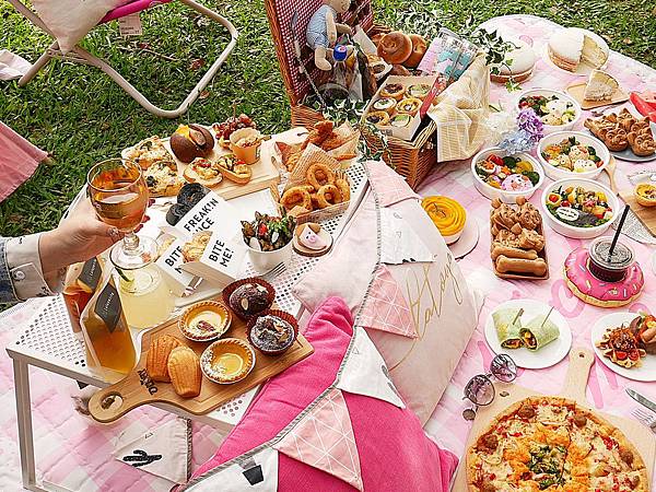 我們在大安森林公園的草坪野餐,沒想到當天剛好有音樂會,草坪上坐滿了野餐的群眾,真的非常熱鬧,也完全不異類XD 只是我們還特別租了道具,看起來特別專業,所有經過的路人都對我們的野餐內容超有興趣,趕快來讓大家看看究竟多吸睛~ 這邊的餐點是大家以每人預算$300準備的,10多個人一起分攤,果然把野餐內容搞得有聲有色。重點是當天同行的人全部都是在IG擁有高人氣的朋友,對於擺盤相當講究,每個角落都擺超美。