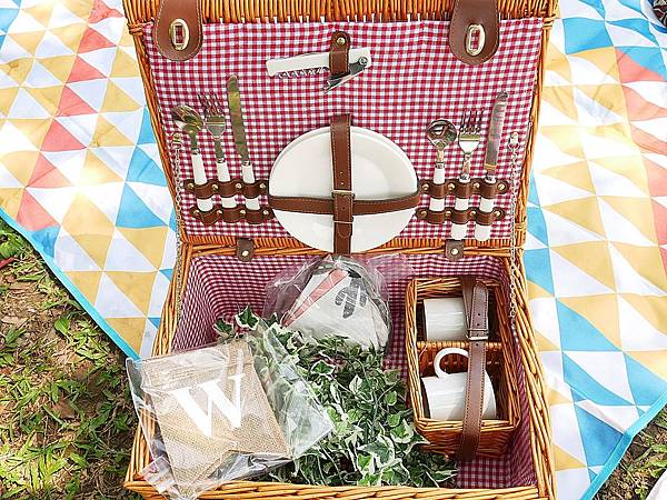 靜香超愛這個野餐籃,不僅是木製的超有質感,而且裡面有超多小巧思,刀叉、餐盤和杯子都收在裡面,不會額外佔空間,而且又精緻,就連裝飾用的三角旗、樹藤也都放在裡面,不怕這邊掉那邊漏,一出場大家都說想帶回家。