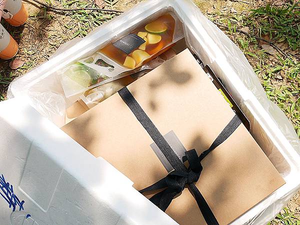 我們除了租借野餐道具之外,也向「璐露野生活Luluyelife」訂了4人份的野餐小食盒$1680 👉 附連結 點我。野餐小食盒包含多種輕食和飲料,因為都是現做,所以需要在現場稍等一下。店家出餐是用禮盒打包,看起來非常精緻也充滿驚喜感,我們怕食物還沒送到大安森林公園就冷掉,還特別拿寶麗龍去裝,是否超專業!
