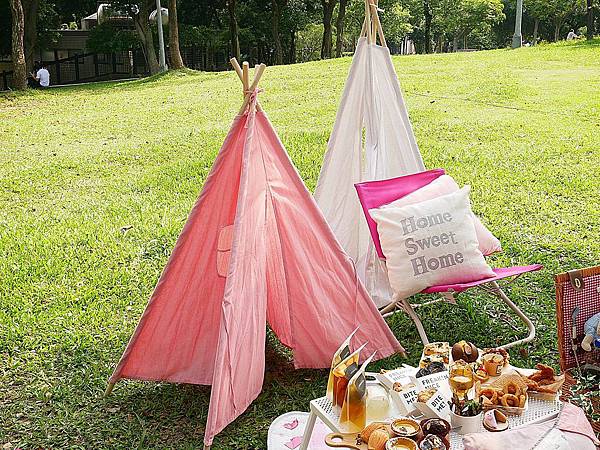 野餐遊戲帳讓女孩們都瘋狂,雖然因為帳棚不大,沒辦法真的鑽進去玩,但用來拍照真的超有野餐fu。