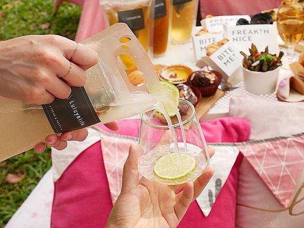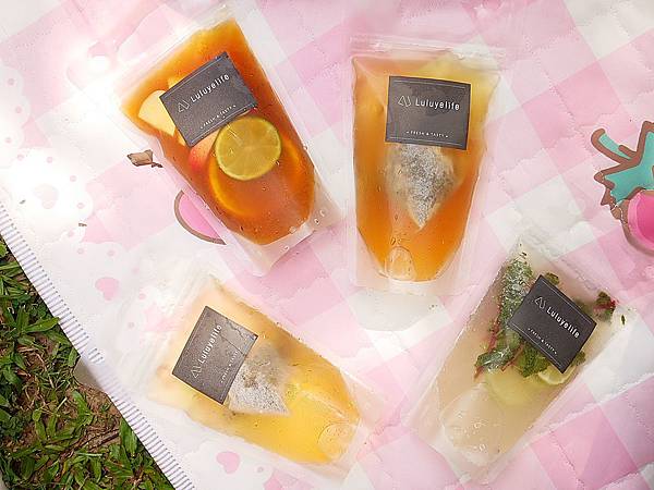 除了餐點之外,野餐小食盒也包含四袋飲料,裡面包含季節水果茶、摩西多凍飲和桂花冰釀烏龍茶,使用袋裝不止方便享用,也散發濃濃野餐風格,插著吸管喝或是倒出來大家一起分享都方便。