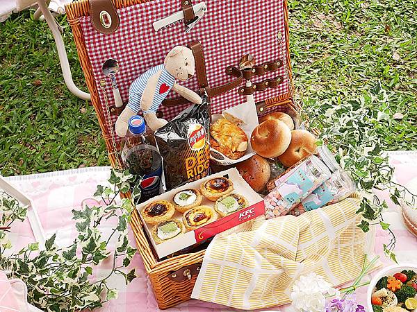 有人準備貝果、餅乾、糖果等小東西,全部放進野餐籃內,好拍又好拿取,野餐籃的SIZE夠大,可以裝進不少食物,如果常常去野餐的朋友,可以考慮入手一個,真的好看又好用。