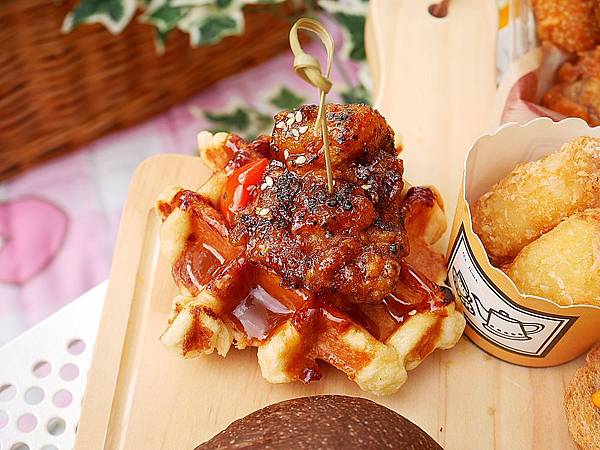 鬆餅上的雞肉還滿大塊,但是上頭的醬汁太多又太濃郁,而且酸甜味很重,稍稍怪~這款比較不合我的胃口