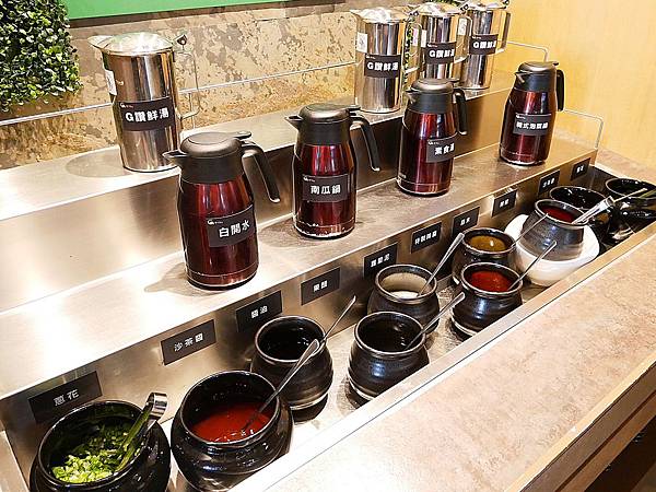 食材旁邊還有湯頭可以自行取用以及各種醬料可以搭配