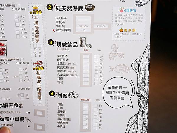 如果沒吃到海鮮覺得渾身不對勁,也可以加$199升級成海陸大餐