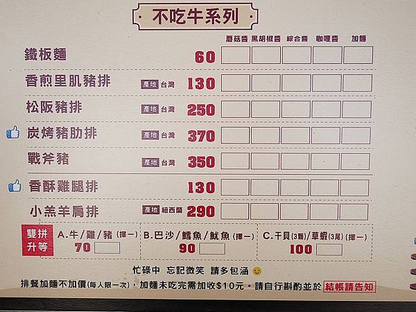魔力牛的煮餐分為牛肉、不吃牛、海鮮三大類