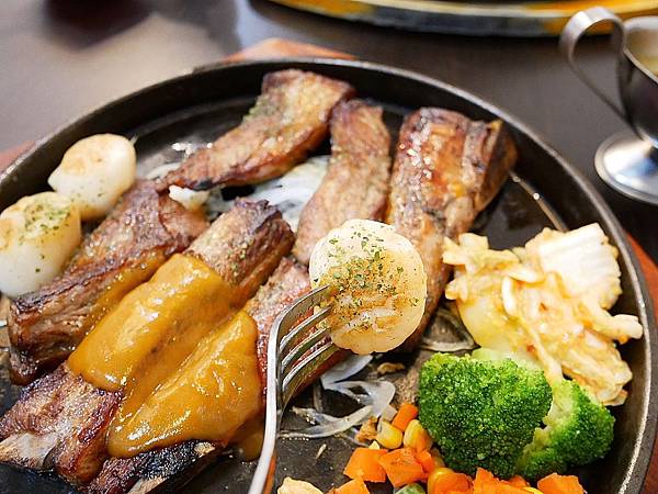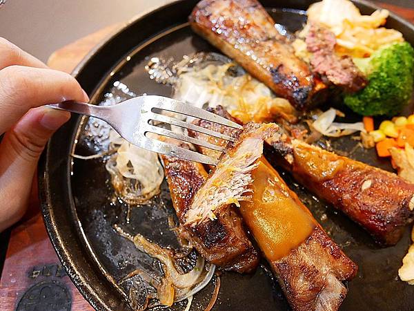肋排不像牛排那麼好下刀,因為帶骨,所以如果不拿起來咬很難吃乾淨
