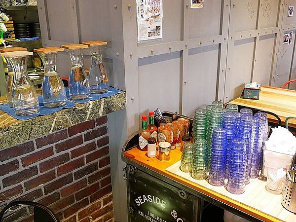 貝加莫廚房採半自助式,茶水、餐具和醬料都擺在一個小桌子上讓顧客自行取用