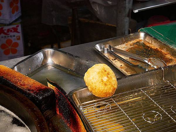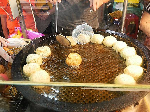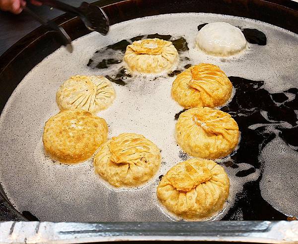 老闆將圓滾滾白胖胖的蔥包放進油鍋內炸,只見蔥包在油鍋內滋滋滋,接著轉為漂亮金黃色