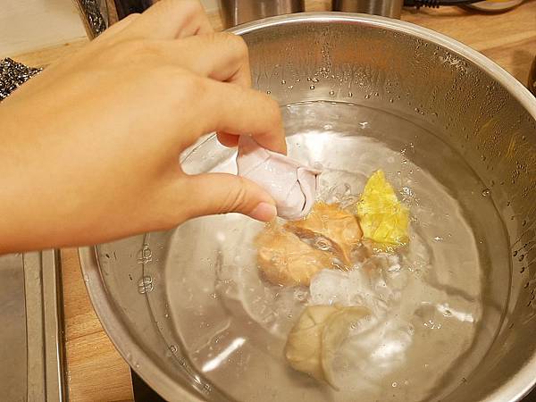 等水又滾了之後,加入一些冷水,第三次滾沸後,就能關火準備起鍋