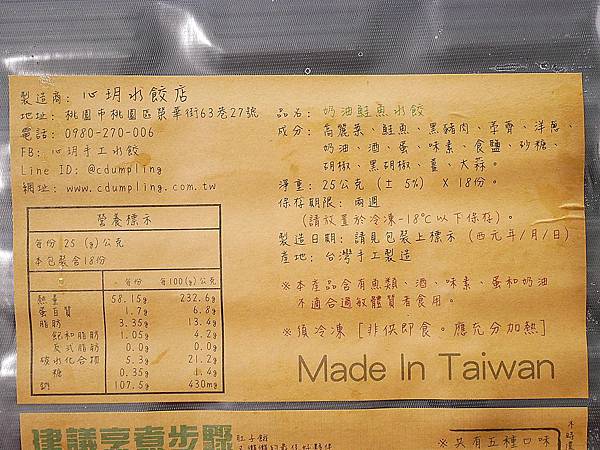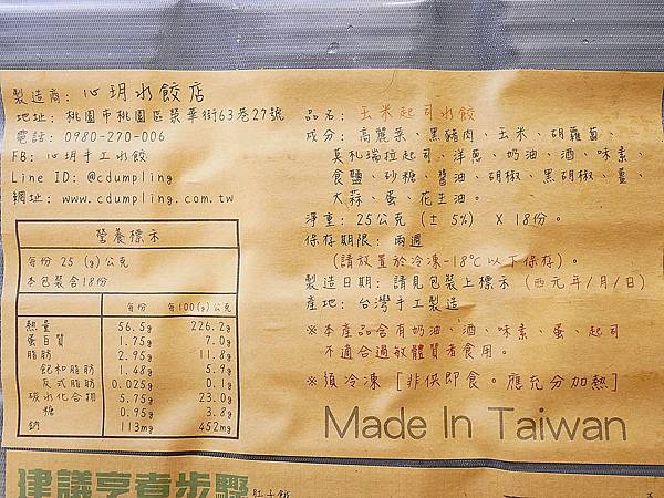 在包裝上都會貼心附上製造日期、成份,也會提醒要冷凍