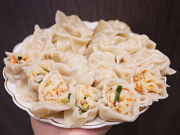 光看就之到鮭魚的用量之豐富,幾乎是把水餃皮內的空間全部塞滿,光看就很過癮