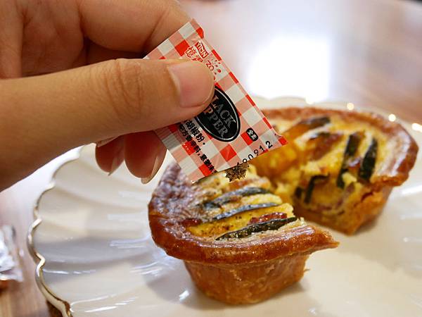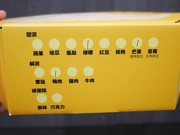 店員說如果是甜派,從冰箱拿出來可以直接享用,鹹派就要用烤箱烤一下或用微波爐熱一下