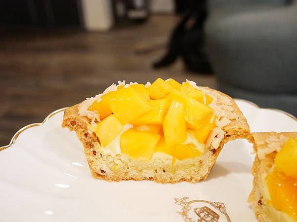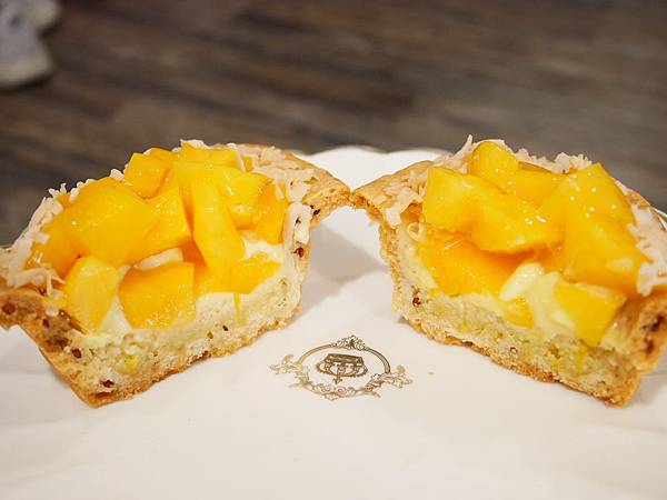 芒果派外型很搶眼,用切成丁狀的芒果疊滿派皮內,外圍再用椰子酥鋪滿,有濃濃夏日風情