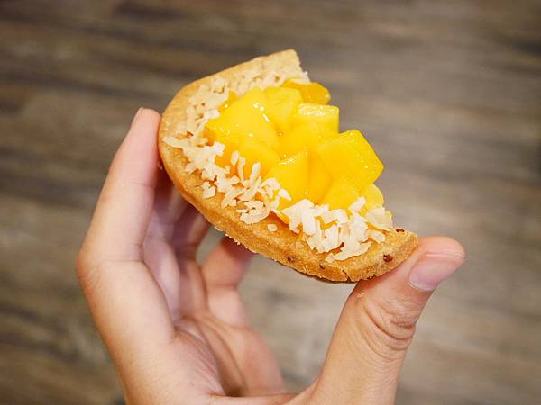 一口咬下所有食材一次入口,是很有層次的口感以及濃濃芒果香氣的風味,表現還不錯