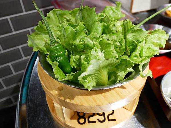 每桌都會附上包燒肉的生菜,裡面除了新鮮的葉菜之外,還有青龍