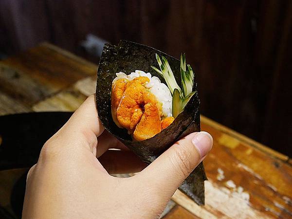 有加一些醬汁調味,所以風味整個被帶出來,但沒有影響到手卷和海膽本身的風味