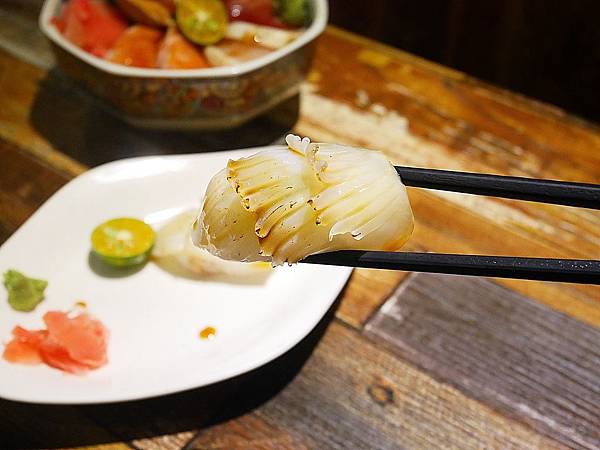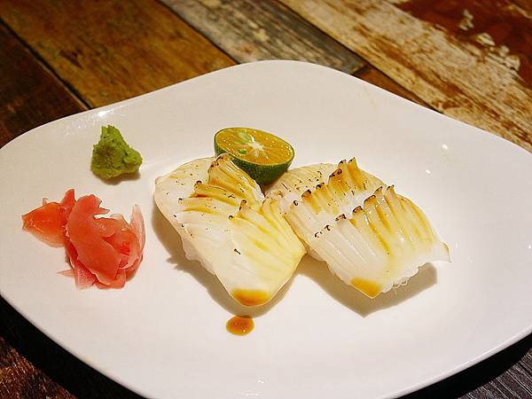 握壽司一共有兩貫,店家的花枝有刻花並微炙燒,所以花枝在飯上看起來很活潑