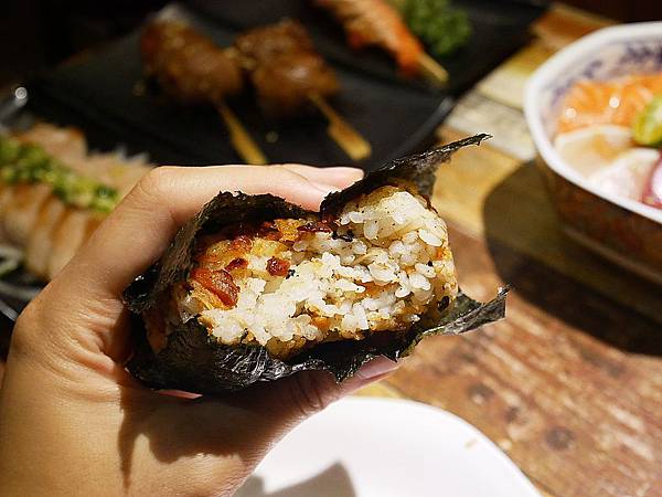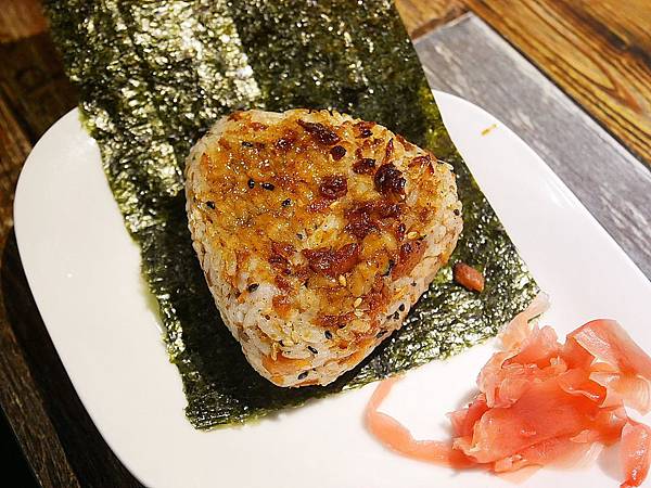 烤飯團size還不小,飯的表面有擦醬汁,所以米飯鹹香夠味又有點胡椒辣度,相當涮嘴耐吃