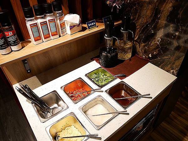 調味料種類不少,辣椒、蒜泥、青蔥都滿新鮮