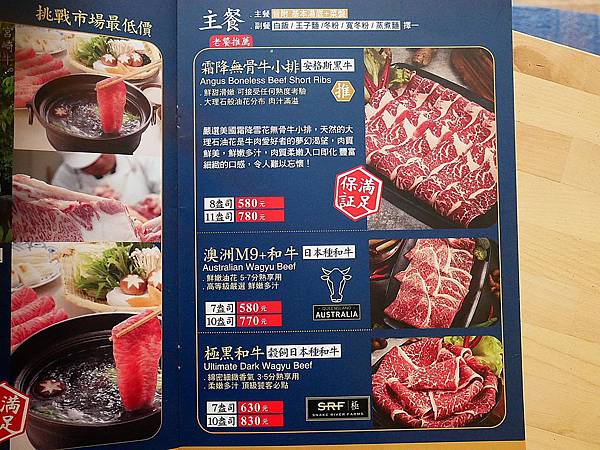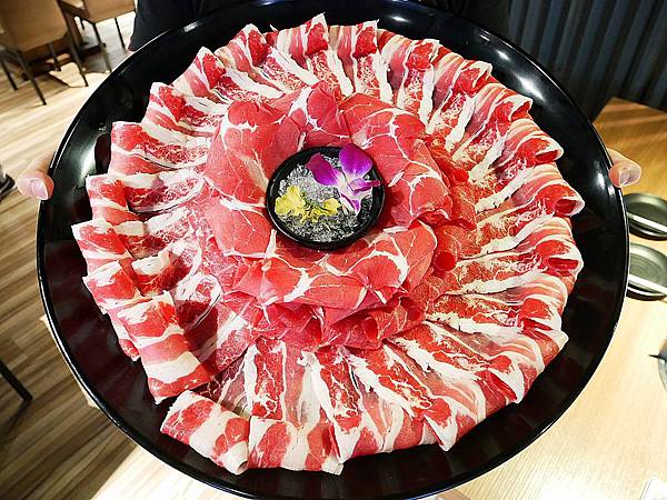 這個肉盤裡面是由兩種肉品堆疊而成,包含安格斯雪花牛和頂級澳洲板腱,一肥一瘦搭得很剛好
