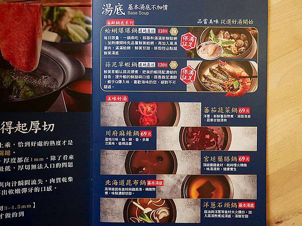 湯底的部分選擇還不少,石頭鍋和昆布鍋都是免費附贈,其他湯底則是加價換購
