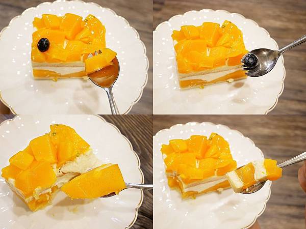 跟男友瞬間分食一份芒果、鮮奶油、蛋糕體比例抓得很剛好,且是夏天超消暑的蛋糕