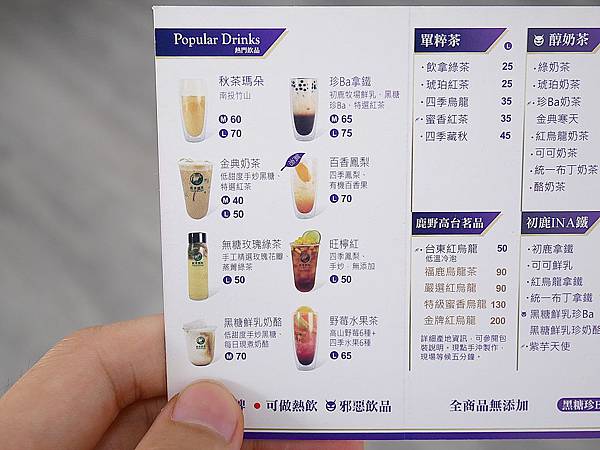 飲拿創茶的飲料品項分為8大類,有幾款比較熱銷的還會獨立出來介紹