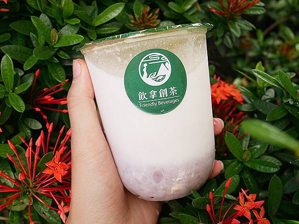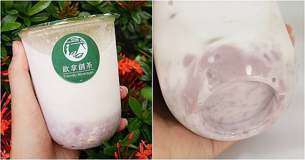 不同於大部分店家選用大甲芋頭,飲拿創茶是使用花蓮檳榔心芋
