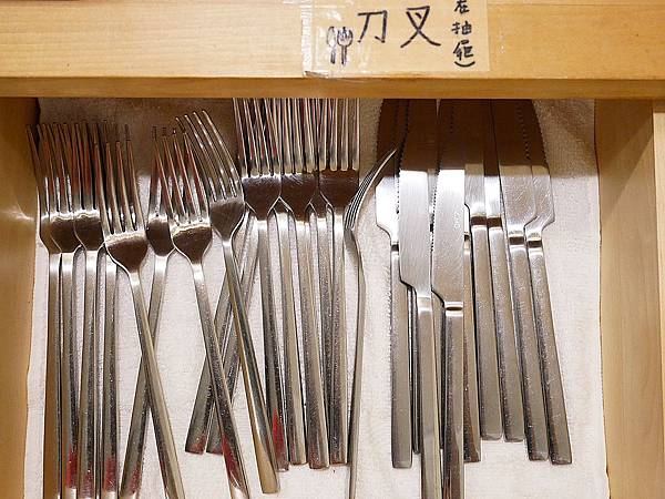 湯匙、刀插都放在抽屜裡面,店家也特別替小朋友準備兒童餐具,相當貼心