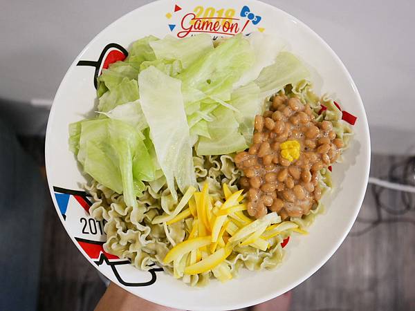 如果覺得這樣太單調,那就來點特別的 - 納豆蔬菜麵